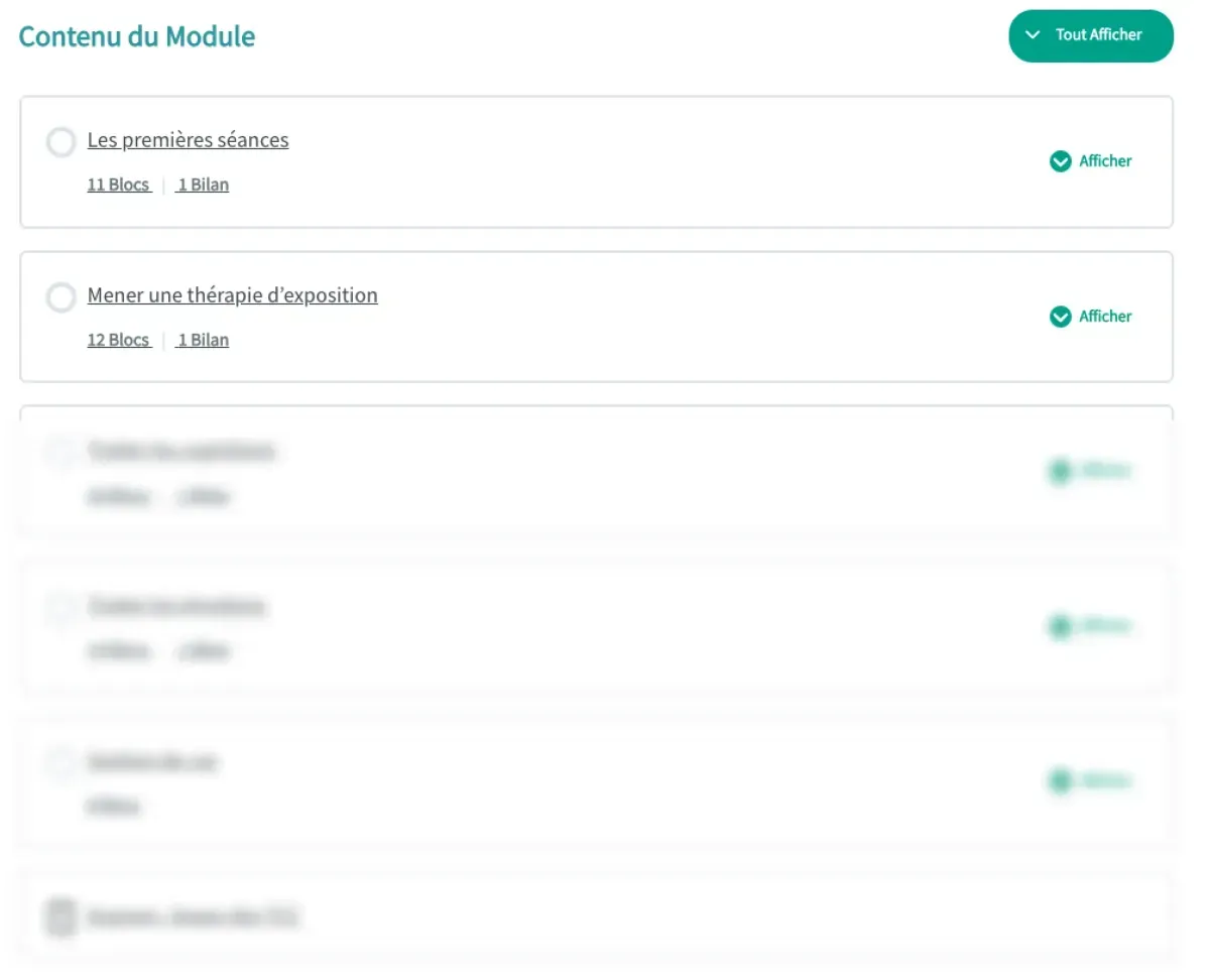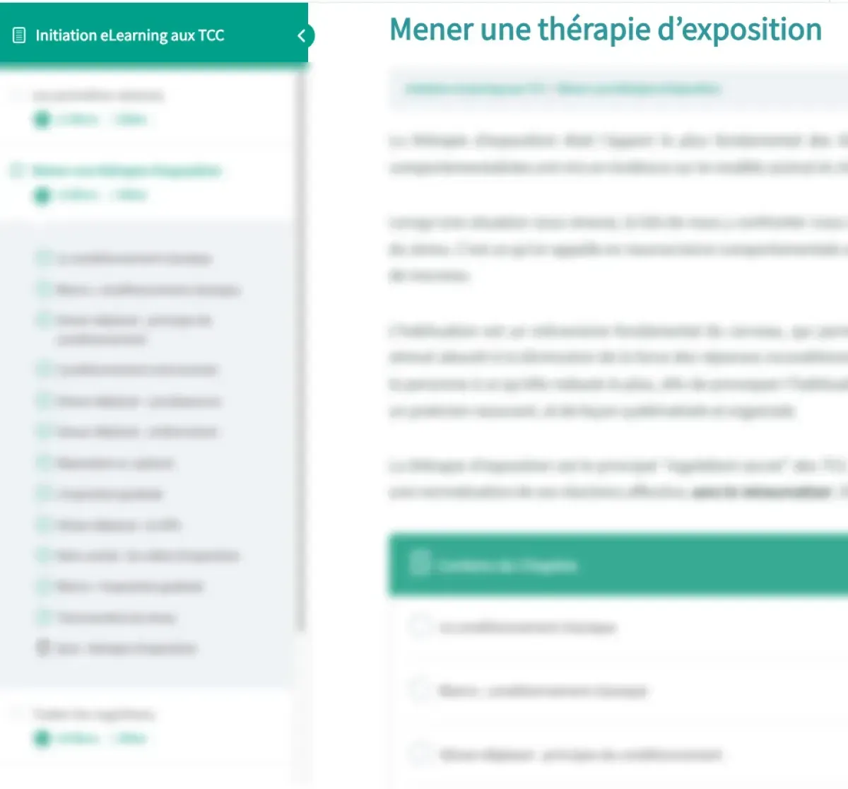 La formation combine des séances théoriques et des exercices pratiques pour une compréhension approfondie de la TCC. Elle inclut des modules en eLearning et des classes virtuelles qui traitent des points théoriques, clarifient les questions et se concentrent sur la pratique à travers des practicums, nécessaires pour valider la formation. Selon les qualifications antérieures et les résultats d'un test de positionnement initial, le parcours peut être personnalisé. Les participants ayant des bases en TCC peuvent être dispensés de certaines étapes, en fonction de leur niveau évalué lors de l'inscription.